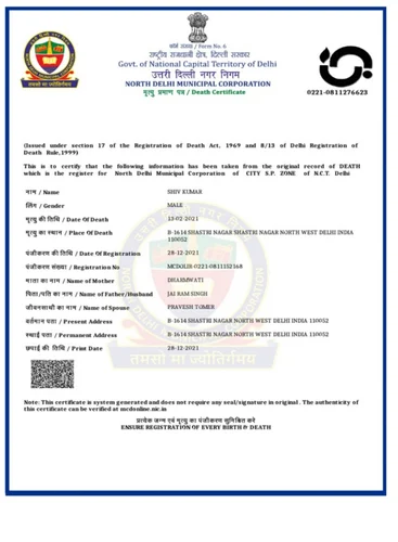 How long does it take to get a death certificate in Delhi?